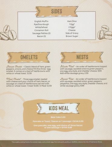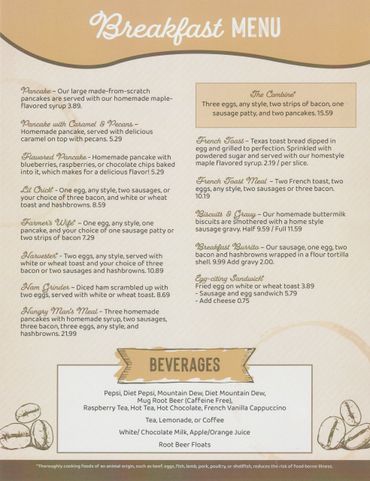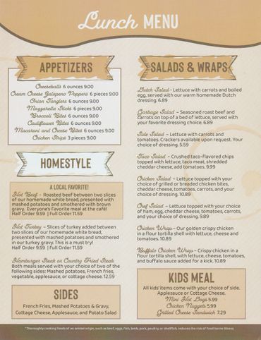 Hot beef, pies, sandwiches, and home-cooked foods.